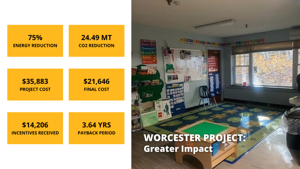 With projected energy and maintenance savings of $84,600 over ten years, the Worcester project delivers an even higher return on investment, further reinforcing the financial and environmental benefits of energy efficiency upgrades.